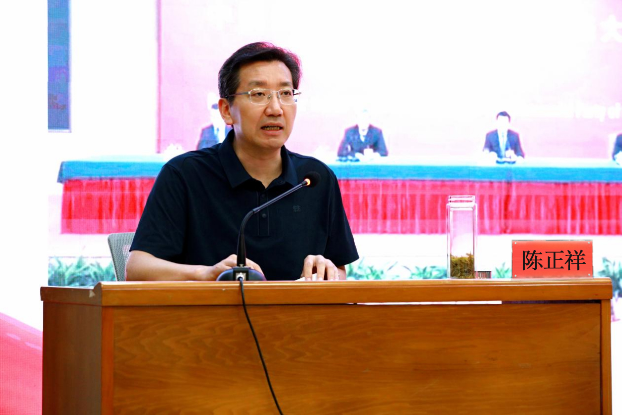 关于“读懂新成就:十年伟大变革彪炳史册”,陈正祥首先用“2、3、16”3个数字带领大家读懂新成就,深刻领会“十年伟大变革彪炳史册”,“2”是“两个确立”,“3”是“三件大事”,“16”是“十六个方面的历史性成就和历史性变革”。他强调,学习宣传贯彻党的二十大精神,首先就是要深刻领悟“两个确立”的决定性意义,“两个确立”理论依据充分、历史渊源深厚、民心基础牢固、时代迫切需要。关于“领悟新思想:党的创新理论生机勃勃”,陈正祥指出,马克思主义,是我们立党立国、兴党兴国的根本指导思想;推进马克思主义中国化时代化,是一个追求真理、揭示真理、笃行真理的过程。学习宣传贯彻党的二十大,必须深刻领悟新思想,用以武装头脑、指导实践、推动工作,必须重点把握三点:一是马克思主义的两个“行”;二是坚持和发展马克思主义必须做好“两个结合”;三是推进实践基础上的理论创新要把握六个“必须坚持”。关于“开启新征程:中国式现代化锚定航向”,陈正祥强调,深刻学习领会中国式现代化理论和战略部署,要深刻认识中国式现代化的艰辛探索;要准确把握中国式现代化的5个方面的中国特色;要深刻理解中国式现代化的9个本质要求和5项重大原则;要紧紧锚定中国式现代化的11个方面目标任务。关于“展现新作为:新的赶考之路奋楫争先”,陈正祥指出,“抱负远大、思想宏大、组织强大、精神伟大、胸怀博大”五个“大”支撑起世界上最大政党“大的样子”;“六个如何始终”则体现了“大也有大的难处”。面对我们存在的问题不足,必须用好自我革命这把破解大党独有难题的利器,深入推进新时代党的建设新的伟大工程。新时代新征程上,要以顽强斗争应对风险挑战;要用三个务必”指引团结奋斗,团结广大人民共同奋斗,引导新时代青少年青春奋斗,紧扣职能职责务实奋斗,真正做到以团结奋斗凝聚复兴力量。
