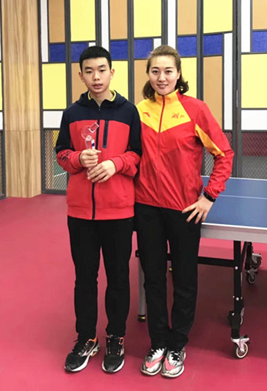 中国国家乒乓球队队员陶育畅与主教练陆莹莹