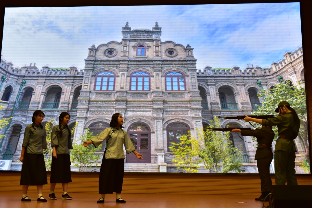 “乐牺牲吾身与汝身之福利,为天下人谋永福也”,高一(1)班以话剧《初心不改》(《新与妻书》),向百年前流血牺牲的革命烈士和百年后奋不顾身的抗疫英雄致敬;“苟利国家生死以,岂因祸福避趋之”,高一(9)班把《纪念刘和珍君》搬上荧幕,歌颂“为着中国而死的中国的青年”,讲述着那些荡气回肠的青春故事。这两部剧的演出肃穆、沉重,但现场的掌声却此起彼伏、经久不衰,这便是青春的回应。