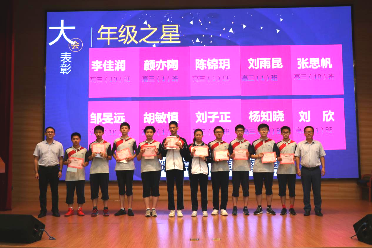 首先,年级主任赵银辉结合九月调考中武汉市的分数线和本校考生的成绩,进行了简明扼要的质量分析。物理方向李佳润同学,历史方向张欣然同学总分均位列武汉市前茅,以之为首的一大批优秀学子考出了个人自信,考出了附中风采。鲁校长、蔡校助和教师代表为受表彰学生颁奖,把大会推向了一个小高潮。在热烈的掌声中,赵主任提出一个引人深思的问题“你是从什么时候开始意识到自己已经高三?”在分享完部分知乎用户的答案后,赵主任对今后的高三复习提出了具体的建议和要求,鼓励大家科学规划,做优秀的高三人。